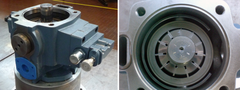 Variable displacement vane pump, with absolute and differential (load sensing) pressure limiters and torque limiter.